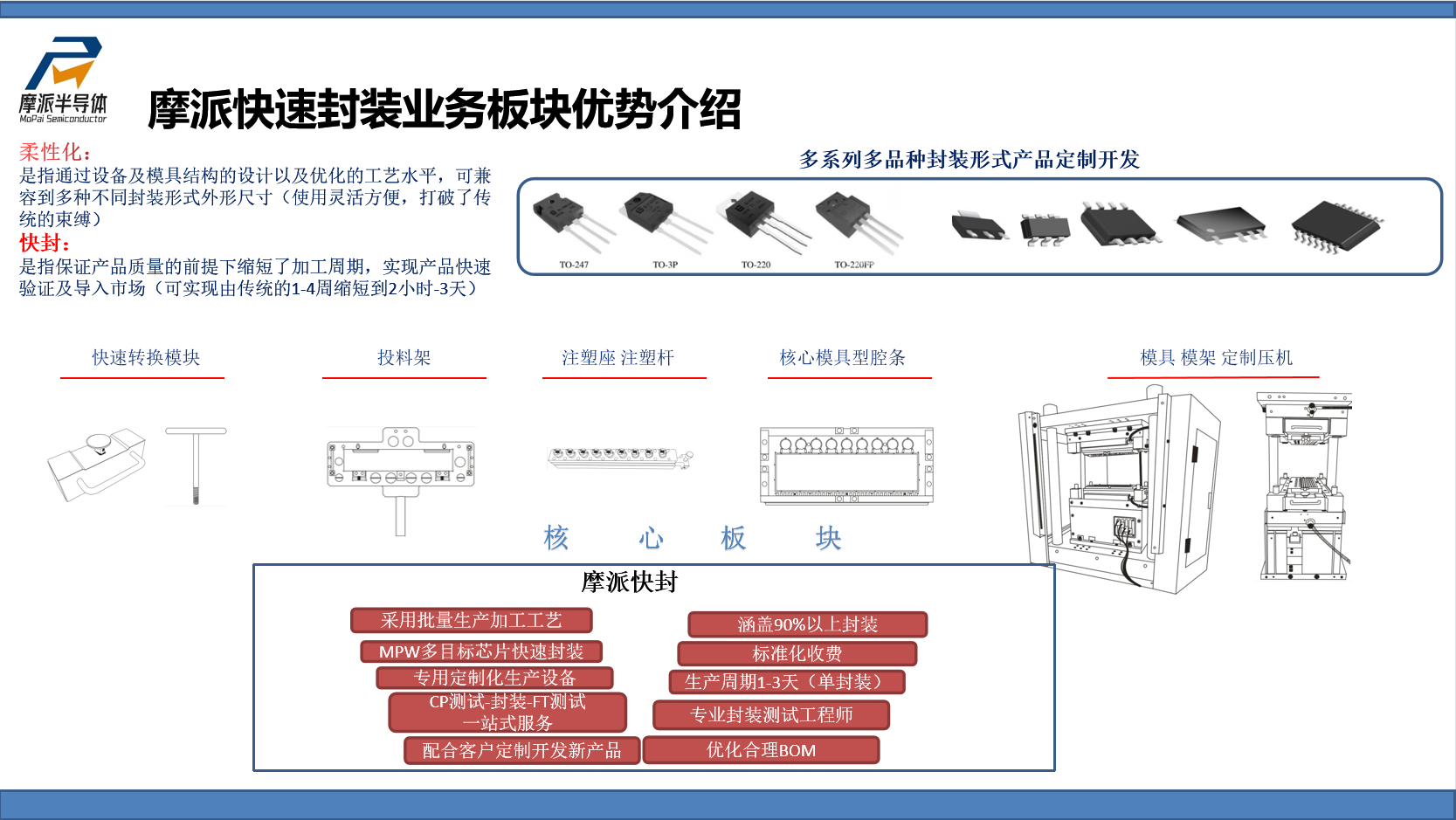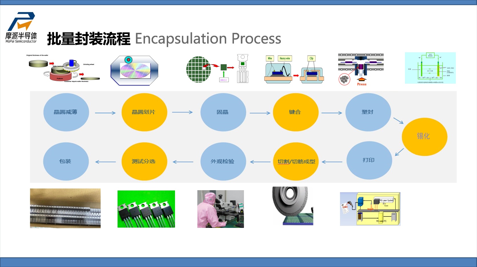 公司主要致力于高效率半导体功率器件研发生产,为客户提供一站式全套解决方案配合客户设计研发及订制外形,公司业务分为快速打样及小批量封装、大批量封装测试、以及承接委外以解决客户需求。我们以优越的品质和交期得到半导体客户的认可与信赖,同时,吸引了大批优秀的高级技术人才加盟。在全体员工不断的努力下,我们坚持”以诚信为基础”以精准的灵活性和高效性,为客户提供客制化解决方案公司面向全国提供芯片开发与方案设计、测试封装、快速打样等全套专业服务。